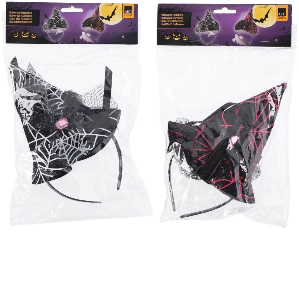 Gyermek Halloween sapka 24cm fejpánttal, 2 féle mix, kis boszorkányoknak