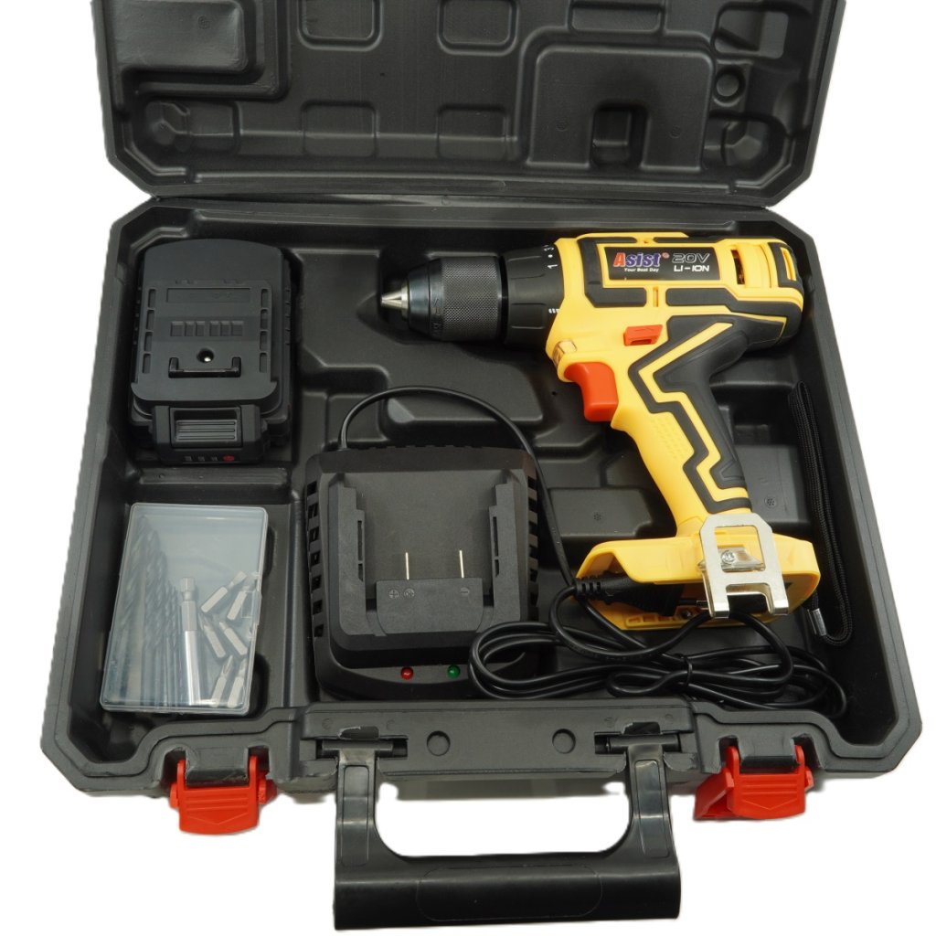 Akkus fúrógép 20V 2,0Ah tokban, automata kompresszorral 10Bar
