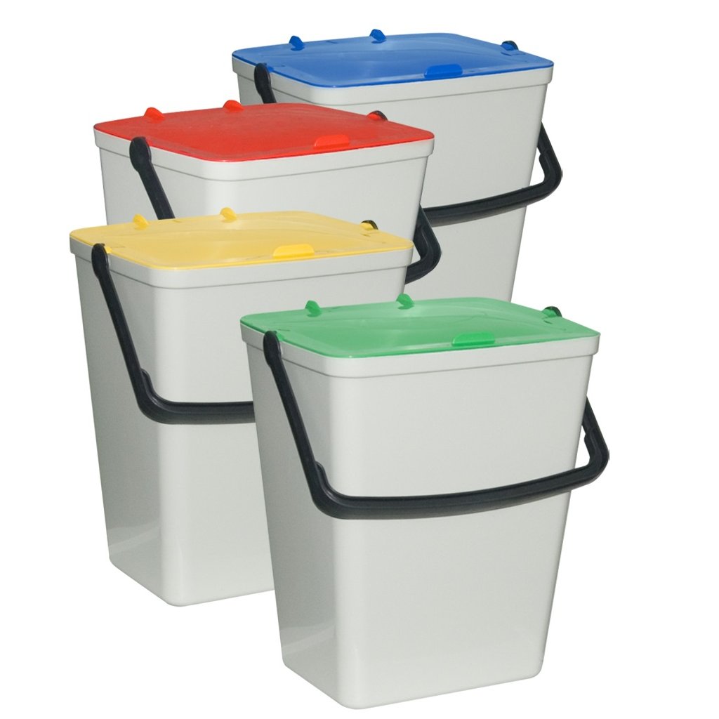 Ez a készlet megvásárlásával kiváló eszközt kap a hulladékok szelektálására. Segítségével a műanyag, az üveg, a papír és a komposztálható hulladékok megtalálják a helyüket. Ha az összes tartály megtelt, egyszerűen tegye át őket a megfelelő jelöléssel ellátott tartályba, és ürítse ki őket. Milyen egyszerű!