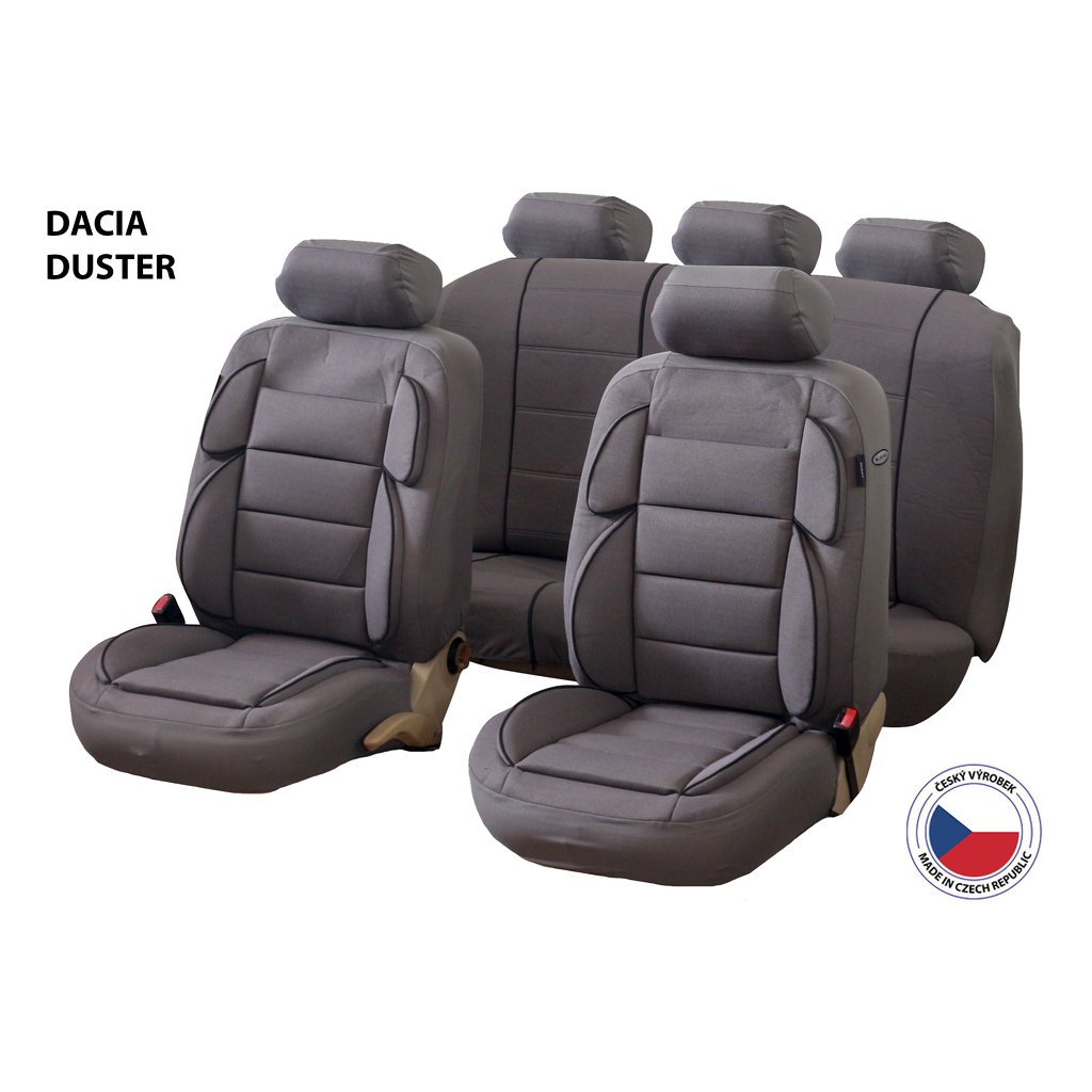 A Dacia Duster I, II, III személyre szabott üléshuzatok megfizethető alternatívát jelentenek a drágább, személyre szabott huzatokkal szemben. Az egyedi szabás teszi ezt a készletet félspeciálissá, amely alkalmas az autók széles körére való felszerelésre. A Perfetto YL autóüléshuzatokat a jármű üléseire és oldallégzsákjaira gyártják és tanúsítják. A légzsákok kioldása esetén az autóülés párnájának oldalán lévő speciálisan varrt varrás elszakad. Az autóülés huzatok nem csúsznak az ülésen a huzat belső oldalán található puha habnak köszönhetően. A karok és az ülésrészek poliészterszövetből készülnek. Az autóülés párnájának csövezése és hátulja poliészterből készült. Az első és hátsó üléshuzatokon előre elkészített lyuk van a fejtámlák számára. A huzat kompatibilis a kivehető fejtámlával ellátott ülésekkel. Az első ülések oldalán is van egy lyuk a dönthető karok számára. A hátsó ülések cipzárral vannak ellátva az osztott ülések 1 3 - 2 3 arányban történő összecsukásához és a hátsó kartámasz használatához. Az üléseken az övzárak számára kialakított lyukak találhatók. A hátsó háttámla további lyukakkal van ellátva a 3. biztonsági öv használatához, a lehajtható kartámaszokhoz stb. A LIMA vágás a CAPPA forradalmi tervezése a maximális fedeles sokoldalúság biztosítása érdekében. Az övzárak az ülés formájától függően három lyuk egyikén keresztül vezethetők, a fejtámla és a 3. biztonsági öv számára előkészített tágas lyukak és cipzárak találhatók a háttámla tetején. A közvetlenül a háttámlába épített biztonsági övek számára a széleken is vannak lyukak. ANYAG: Steppelt poliészter szövet Elasztikus poliészter 8 mm-es PUR hab (elöl és oldalt) 12 mm-es PUR hab (párnázott panelek) MŰSZAKI LEÍRÁS: Oldallégzsákokkal való használatra gyártott és tanúsított. Az autósülések nem csúsznak az ülésen a huzat belső oldalán található puha habnak köszönhetően Előre előkészített lyukak a fejtámlák és a fekvő karok számára A hátsó ülések cipzárral vannak ellátva A huzatok mindkét oldalon 1 3-2 3 arányban osztott és osztott hátsó ülésekkel rendelkező járművekhez alkalmasak Kompatibilis a hátsó kartámasszal, a 3. övvel és a beépített övekkel Készlet 5 üléshez Könnyű összeszerelés Gépben mosható 30 fokon Csehországban készült. A csomag 11 darabot tartalmaz: 0trtd. Vezetőülés td td 1× háttámla td td 1× ülőrész td td 1× fejtámla huzat td trtrtd Utasülés td td 1× támaszrész td td 1× ülőrész td td 1× fejtámla huzat td trtrtd Hátsó ülések td td 1× ülésrész 2 cipzárral összekötve td td 1× háttámla 2 cipzárral td td 3× fejtámla huzat td tr asztal