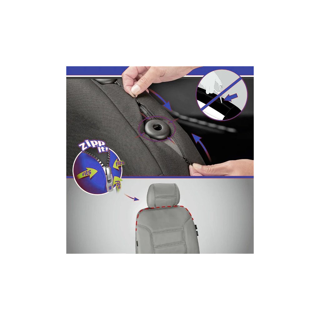 A tökéletesen illeszkedő autóüléshuzat az első ülésre L S ANGELES luxus megjelenést kölcsönöz autója belsejének, és megvédi az első ülést a kopástól és a szennyeződésektől. Az autóülés párnája valódi bőrből készült, PUR-habbal borított huzatban. A huzat oldala és hátulja poliuretánból készült. Az üléspárna elején egy praktikus zseb található. Ennek az autóülés huzatnak az előnye az univerzális méret, a nagyon egyszerű és gyors összeszerelés. Oldallégzsákkal ellátott és oldallégzsák nélküli járműtípusokon egyaránt használható. A fejtámla formák és a hajtókarok már elő vannak készítve és cipzárral zárva a lehető legjobb illeszkedés érdekében. ANYAGOK: 7 mm-es PUR-hab. MŰSZAKI LEÍRÁS: 1 db Tökéletesen illeszkedő huzat fejtámlával fejtámla és állítókarok cipzárral Praktikus zseb az ülőpárna elülső részén Kiváló minőségű kivitelezés és luxus kivitelű autós üléspárna Maximális kényelem a vastag habréteggel Könnyű és gyors felszerelés A huzat megakadályozza a kopást, a szakadást, a karcolásokat, a szennyeződéseket, és új külsőt kölcsönöz az autó belsejének Az autóhuzat kompatibilis a hagyományos, kivehető fejtámlával ellátott első autóülések túlnyomó többségével Alkalmas oldallégzsákkal és oldallégzsák nélküli járműtípusokhoz is 1× háttámla és üléshuzat 1× fejtámla huzat