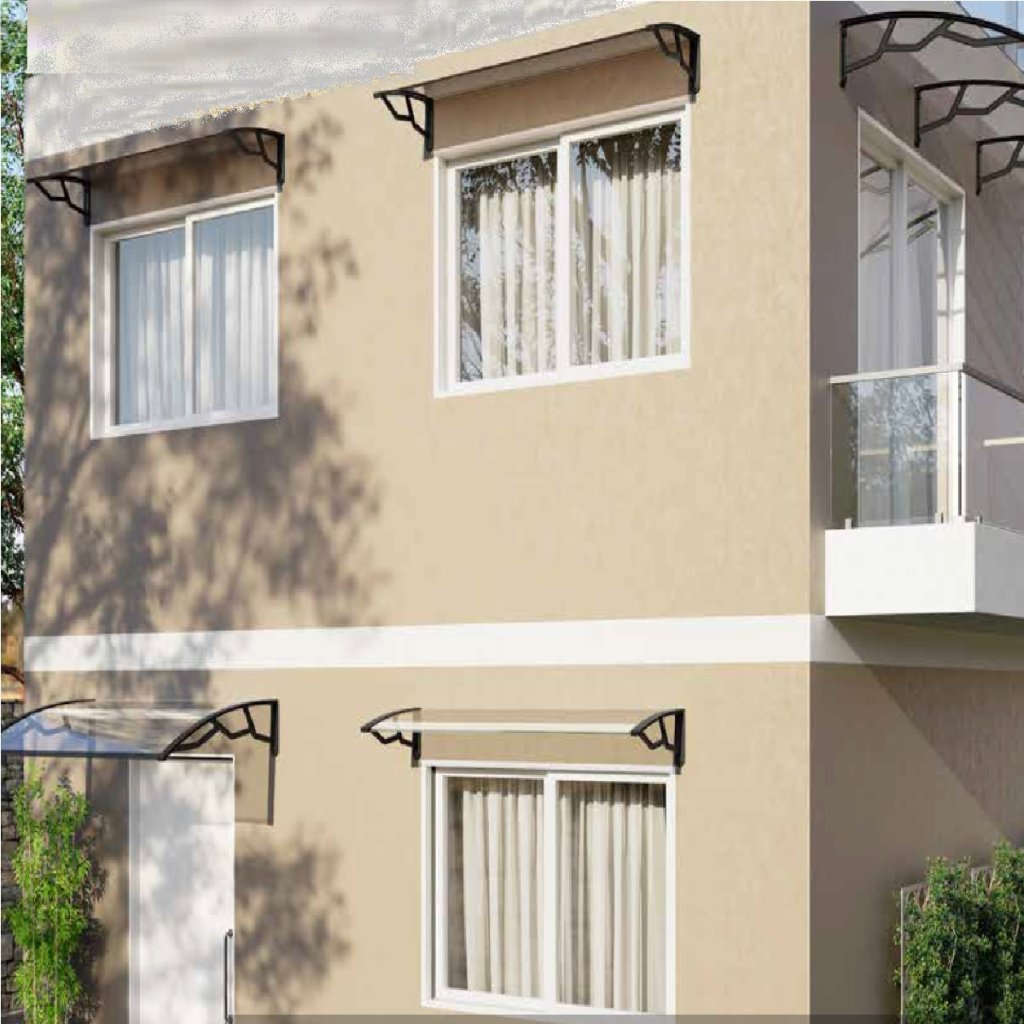 Kompakt (tömör) polikarbonát tető UV-védelemmel és 4mm vastagsággal. Tartókarok/keret megerősített polipropilénből, sötétszürke színben. Az előtető védelmet nyújt a kedvezőtlen időjárás ellen és védi a bejárati területet. Az épület körüli erkélyek vagy járdák részleges lefedéseként is használható.
