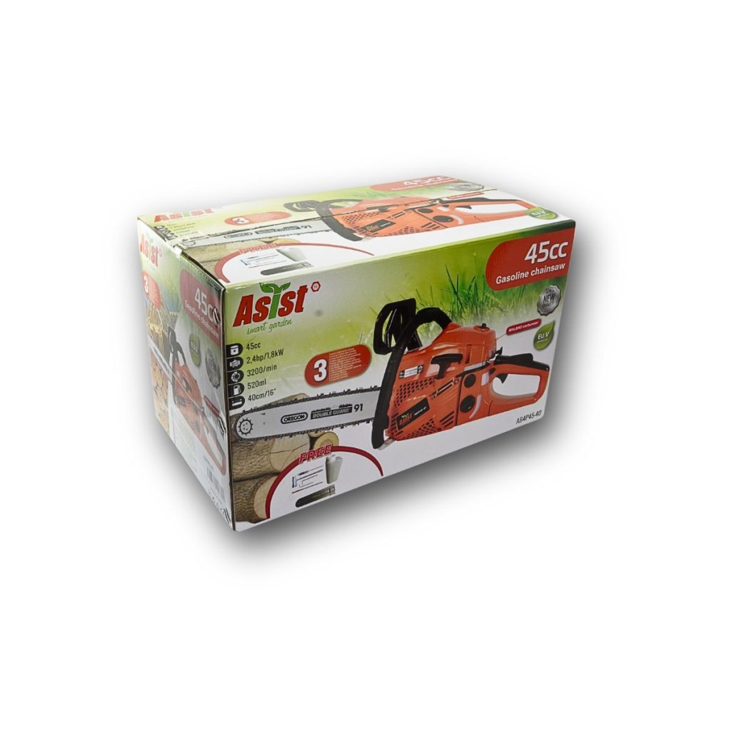 Az Asist Smart Garden benzines láncfűrész előnye, hogy elég erős a mindennapi munkához. WALBRO karburátor és OREGON lánc és láncszár a precíz munkavégzéshez. Ezenkívül számos biztonsági funkcióval rendelkezik, amelyek maximális biztonságot nyújtanak a fűrésszel dolgozó személy számára.
