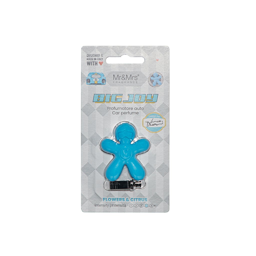 A Big Joy egy Luca Trazzi által tervezett autós légfrissítő, amelyet sportos, popos és színes szellemben tervezett. EVA - hőre lágyuló polimerből (puha gumi) készül, és kellemes illatot bocsát ki, amikor érintkezik az autó szellőzőnyílásán keresztül kifújt levegővel. Nagyon vonzó kialakítás egy baba alakjában Hőre lágyuló polimerből (lágy gumiból) készült. Bergamott, barack, rózsa, narancsvirág, fehér pézsma és vanília jegyei. Híres olasz formatervezés Rangos IFRA tanúsítvány Biztonságos az egészségre Akár 50 napig szabadítja fel az illatot Méretek: 4,5 x 5,5 cm A légkondicionáló kipufogójára rögzíthető.