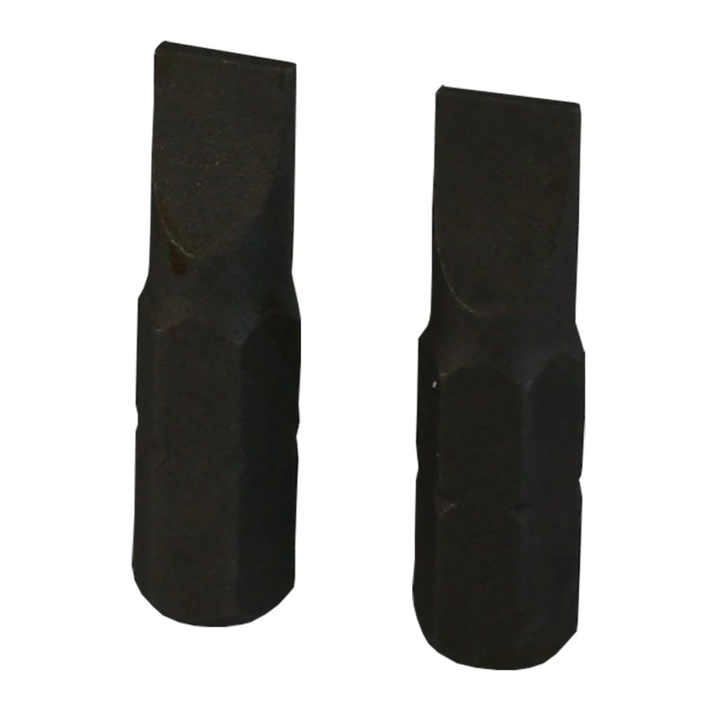 A bitek a dugós csavarhúzókhoz alkalmasak. Kiváló minőségű anyagból készülnek: króm-vanádium. A csomagban 2 db 6 mm-es lapos bit található. Előnyük, hogy mágnesezettek. Az egyik bit mérete 25mm.