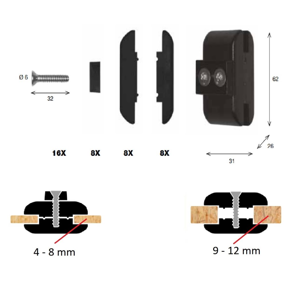 Bútorcsatlakozó 180 - 8 darabos készlet