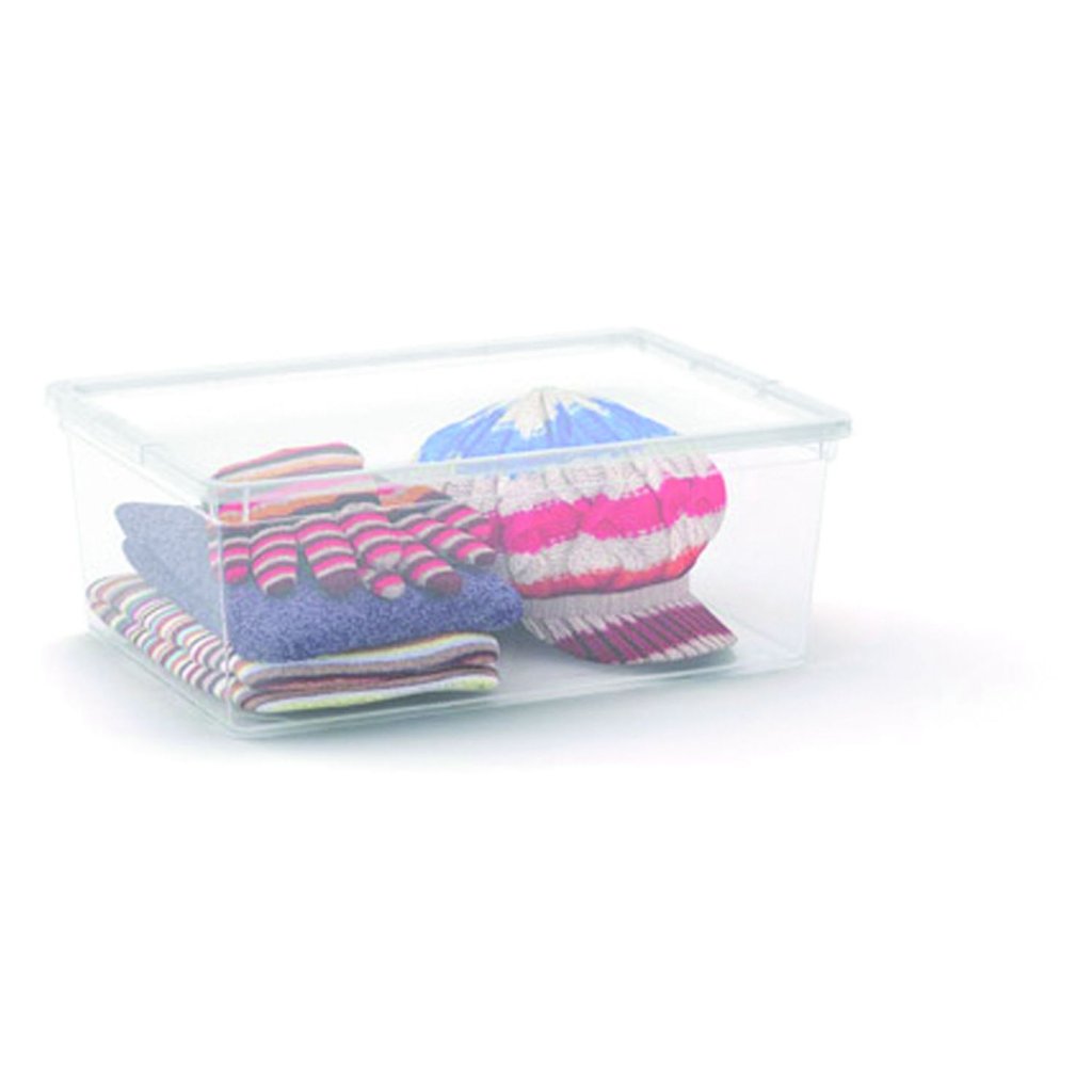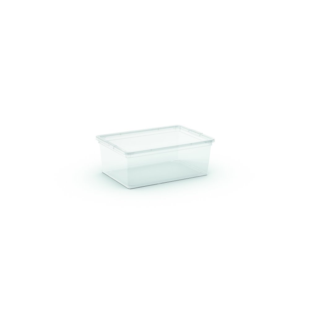 Az átlátszó kialakítás azonnali tájékoztatást ad arról, hogy mi van benne. Praktikus fedéllel rendelkezik, amely egyszerűen rápattintható a dobozra. Az oldalsó fogantyúknak köszönhetően könnyen hordozható. Több doboz egymásra rakható vagy nagyobbra összehajtható, ha szükséges.