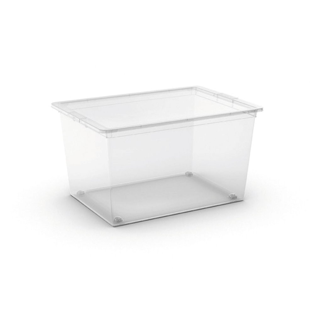 Átlátszó kialakítás azonnal láthatóvá teszi, hogy mi van benne. Több doboz egymásra helyezhető, hogy szükség esetén helyet takarítson meg. A kerekek, amelyeken áll, biztosítják, hogy még egy teli dobozt is könnyű szállítani. Praktikus fedéllel van ellátva, amely egyszerűen rácsíptethető a dobozra.