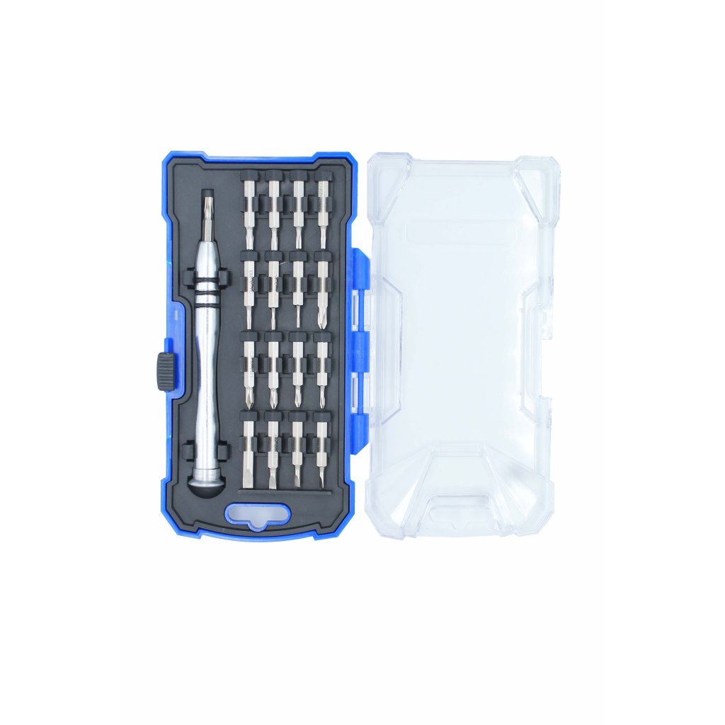 A 18db precíziós csavarhúzó bitből álló készlet tartalmazza: