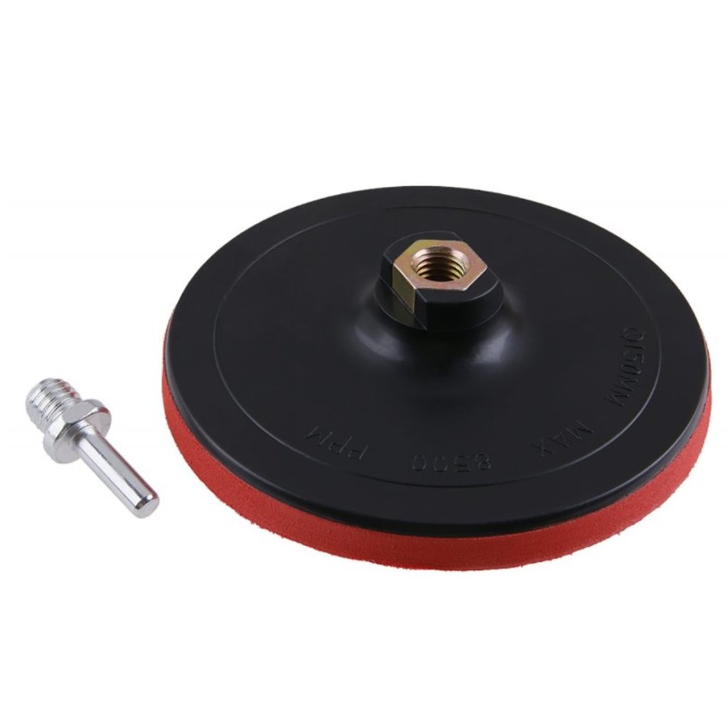 Homokpapírtartó, rugalmas alátétlemez, puha rugalmas EVA hab, nagyon jó alkalmazkodás a csiszolási felülethez, cérna: M14, szárcsökkentés M 14 / 8mm, felhasználás : 150 mm átmérőjű csiszolószerszámok tartására, rögzítés típusa : tépőzár, csomagolás : buborékcsomagolás eurolyukkal.
