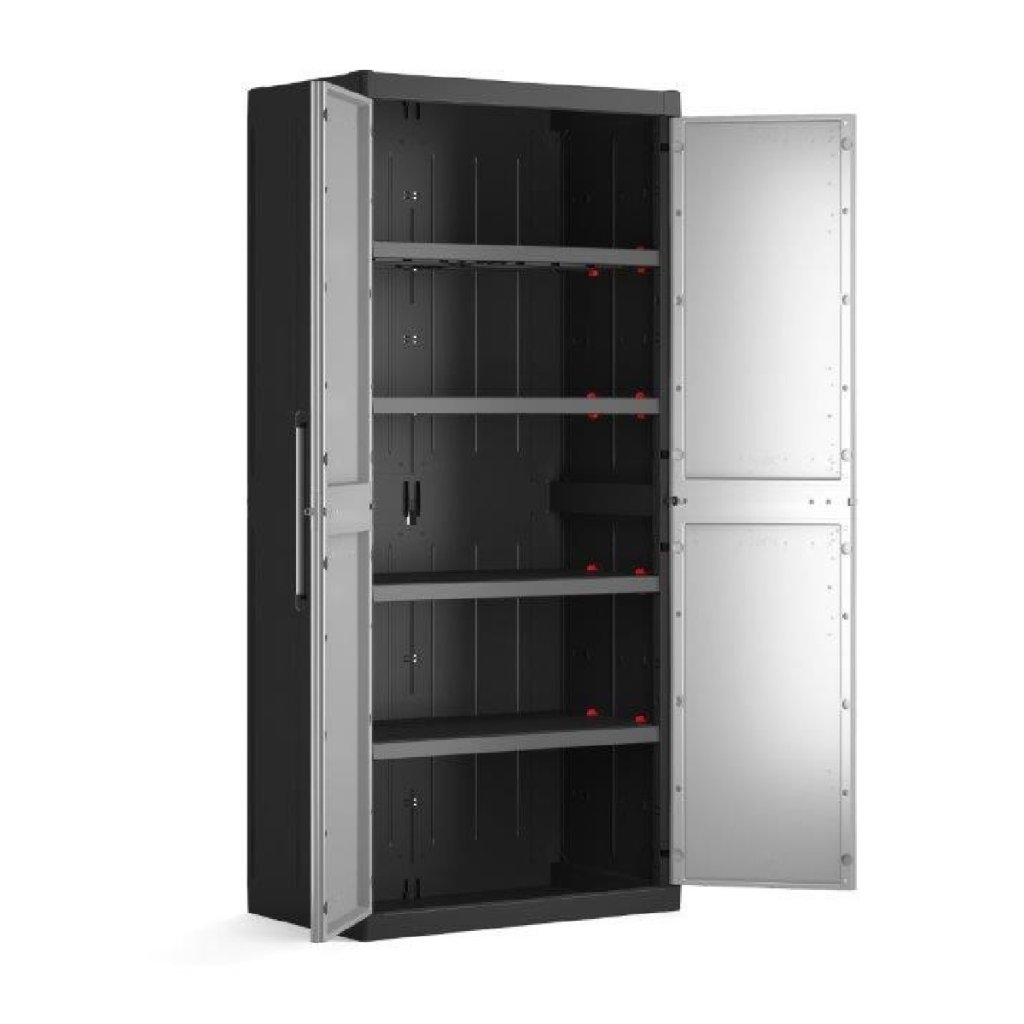 A szekrény alkalmas pincébe, garázsba, műhelybe, erkélyre, teraszra vagy előszobába különböző és terjedelmes tárgyak tárolására. Összeszerelése egyszerű és gyors. A modern olasz dizájnnal rendelkező, nagyszerű, univerzális szekrény garantáltan jól fog jönni. Emellett a DETROIT XL termékcsaládból más modelleket is választhat, és variálhatja a tárolóhelyet.