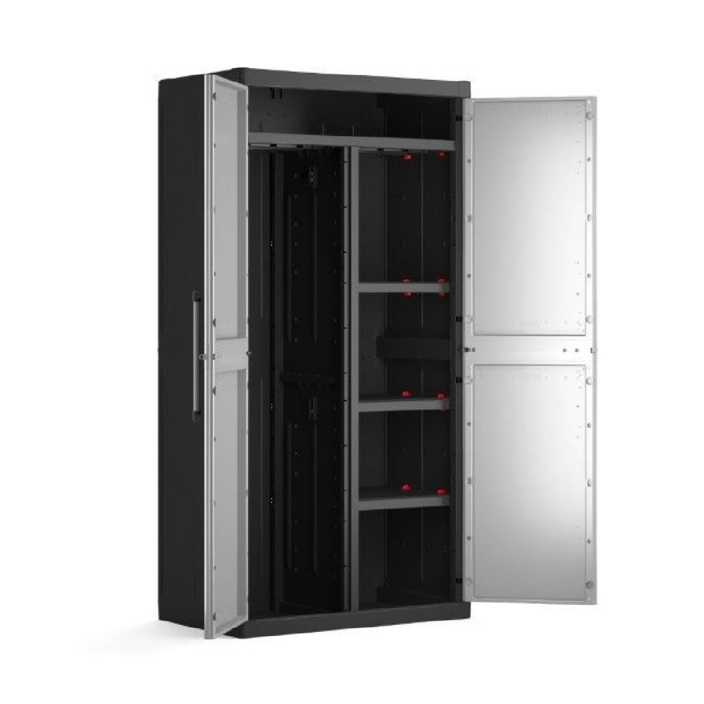 A szekrény alkalmas pincébe, garázsba, műhelybe, erkélyre, teraszra vagy előszobába különböző és terjedelmes tárgyak tárolására. Összeszerelése egyszerű és gyors. A modern olasz dizájnnal rendelkező, nagyszerű, univerzális szekrény garantáltan jól fog jönni. Emellett a DETROIT XL termékcsaládból más modelleket is választhat, és variálhatja a tárolóhelyet.