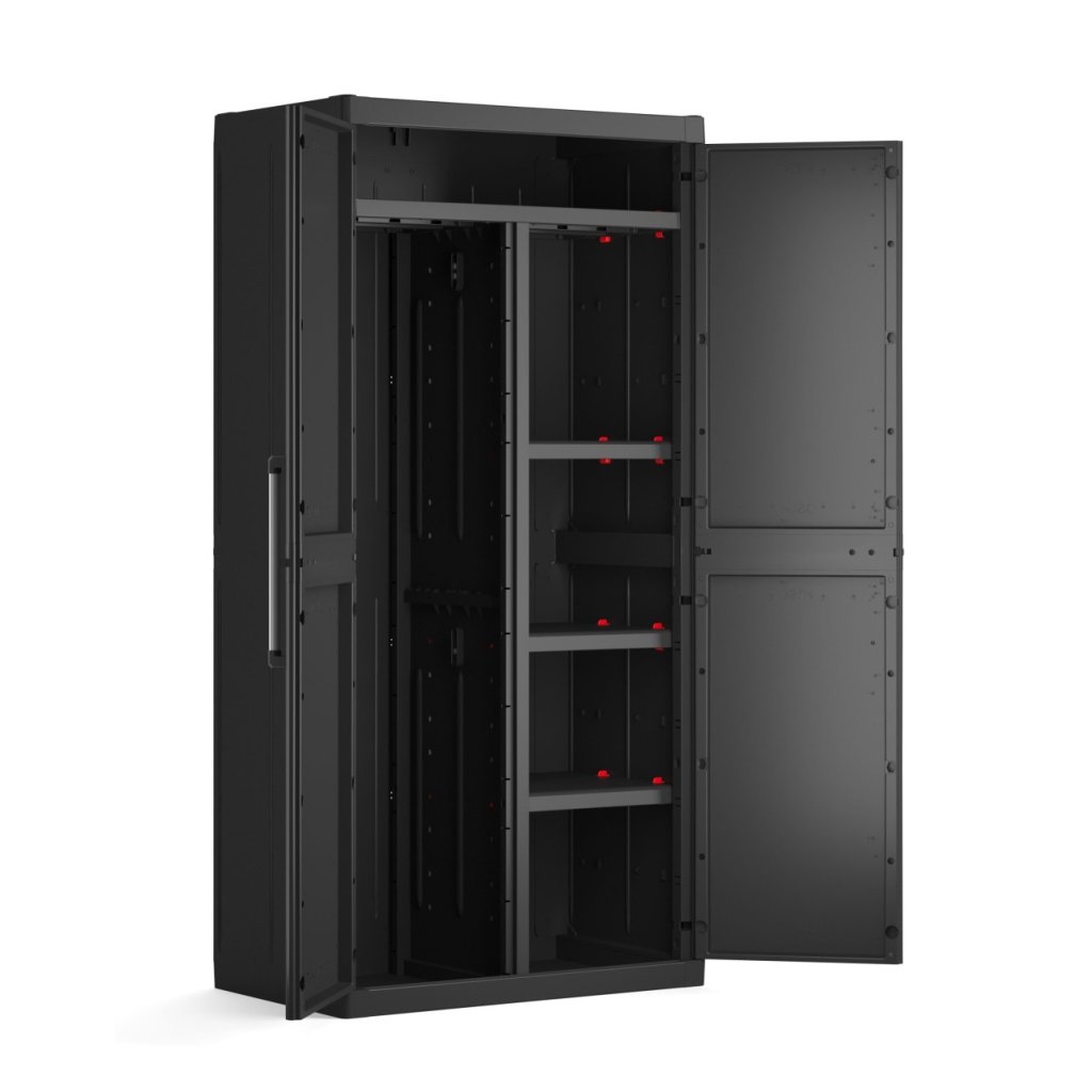 A szekrény alkalmas pincébe, garázsba, műhelybe, erkélyre, teraszra vagy előszobába különböző és terjedelmes tárgyak tárolására. Összeszerelése egyszerű és gyors. A modern olasz dizájnnal rendelkező, nagyszerű, univerzális szekrény garantáltan jól fog jönni. Emellett a DETROIT XL termékcsaládból más modelleket is választhat, és variálhatja a tárolóhelyet.