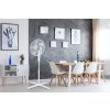A légcsavar átmérője 40 cm 5 nagysebességű légcsavar védőrács felvett teljesítmény 50 W 3 sebességfokozat állítható magasság 102 - 120 cm automatikus oszcilláció fehér-szürke design