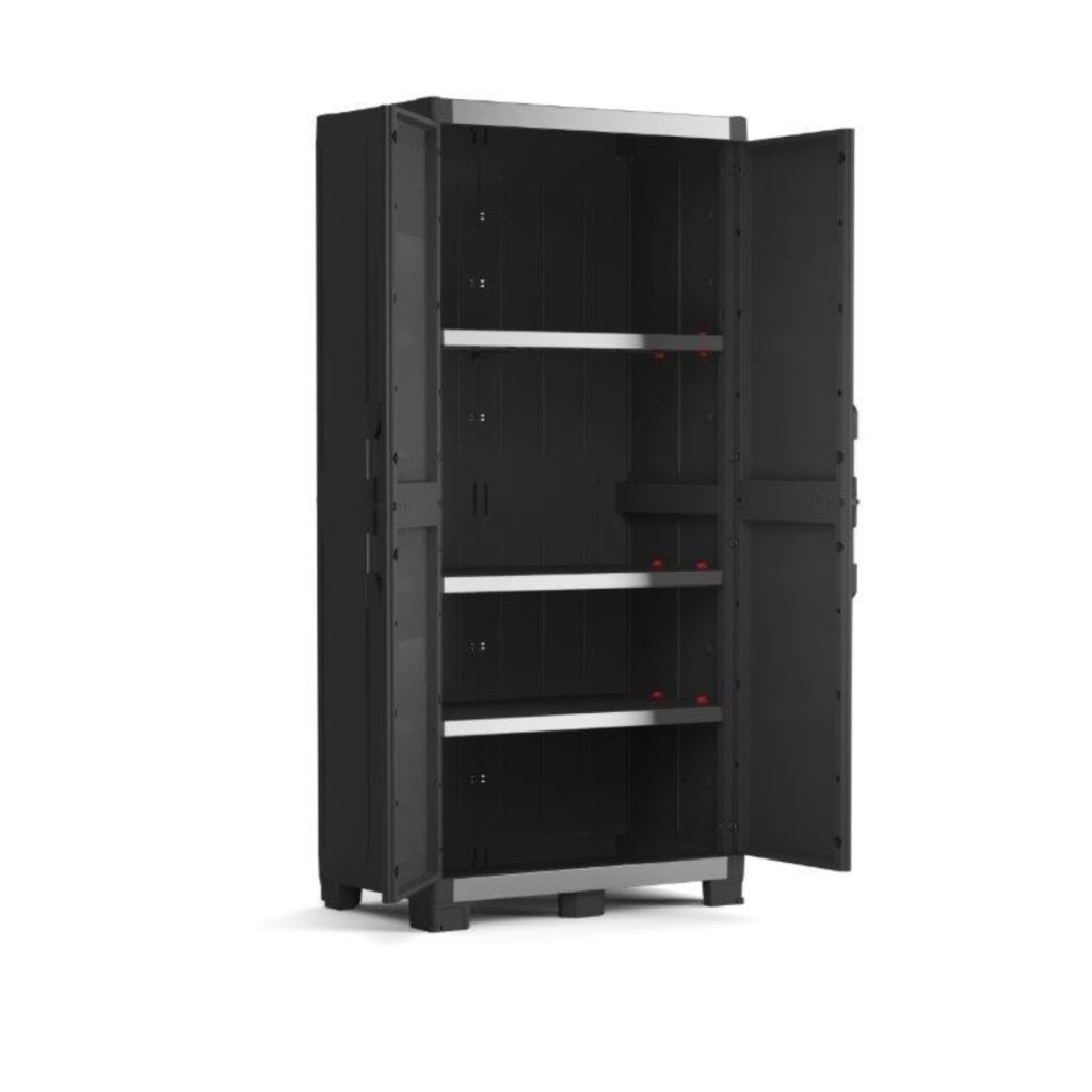 Fedezze fel a tartósság és a praktikum erejét a GARAGE XL tárolószekrénnyel, amely tökéletes megoldás minden környezetbe. Ez a szekrény 100%-ban újrahasznosítható műanyagból készült, így biztosítja, hogy ellenáll az UV-sugaraknak és az időjárás viszontagságainak, így ideális tárolási megoldást kínál mind beltéri, mind kültéri helyiségekbe.