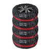 A gumiabroncsok és kerekek tárolás és szállítás közbeni védelmére szolgáló hüvelyek. Megakadályozza a keresztszennyeződést és a karcolásokat, valamint a gumiabroncsok UV-sugárzás általi károsodását. Alkalmas pót- és lapos kerekek szállítására is. MŰSZAKI LEÍRÁS: Kerékátmérő: 13-16 A gumiabroncs maximális külső átmérője: 60 cm Poliészter 210D 4 darab csomagonként Húzópánttal és a kocsira való helymegjelöléssel