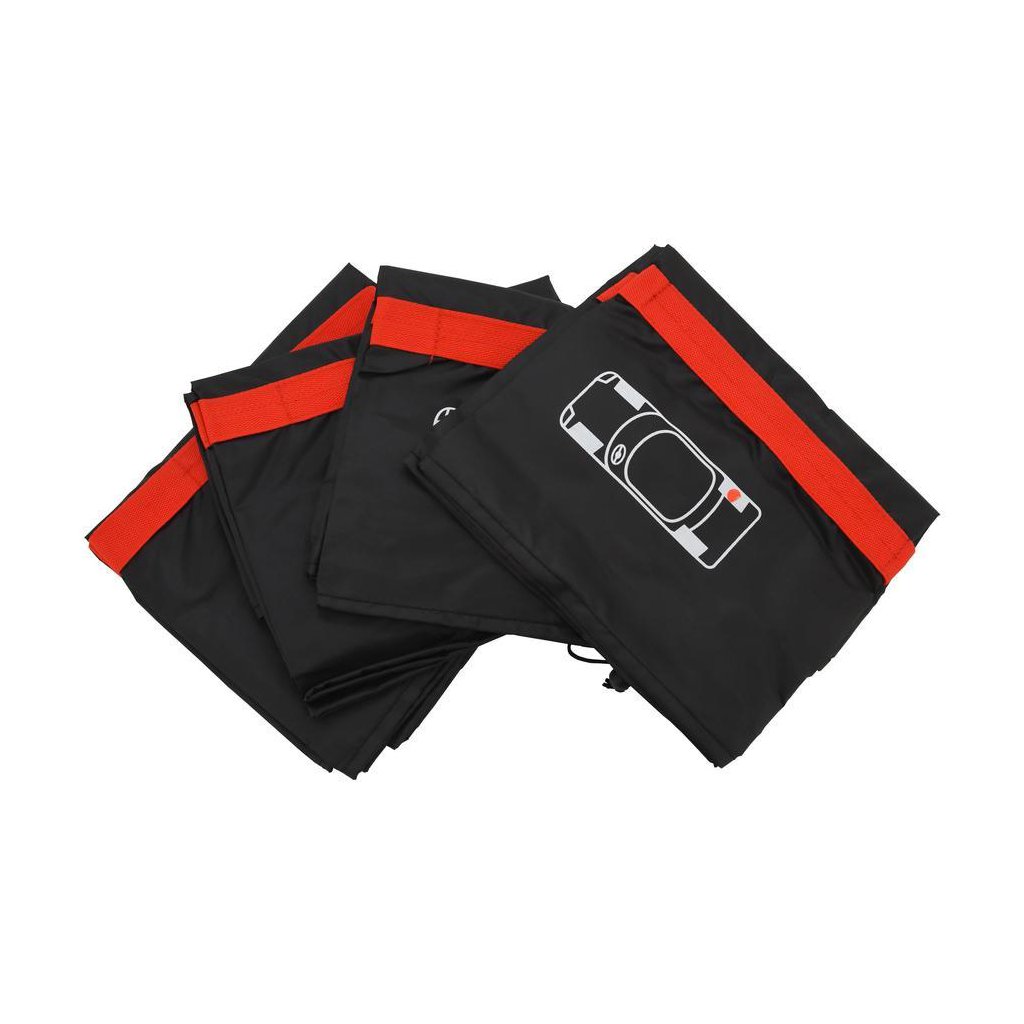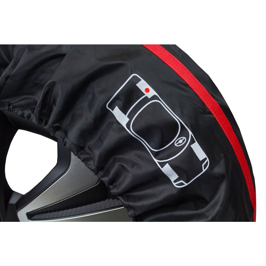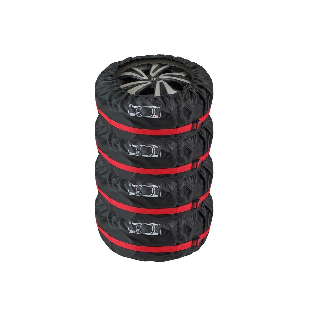 A gumiabroncsok és kerekek tárolás és szállítás közbeni védelmére szolgáló hüvelyek. Megakadályozza a keresztszennyeződést és a karcolásokat, valamint a gumiabroncsok UV-sugárzás általi károsodását. Alkalmas pót- és lapos kerekek szállítására is. MŰSZAKI LEÍRÁS: Kerékátmérő: 13-16 A gumiabroncs maximális külső átmérője: 60 cm Poliészter 210D 4 darab csomagonként Húzópánttal és a kocsira való helymegjelöléssel