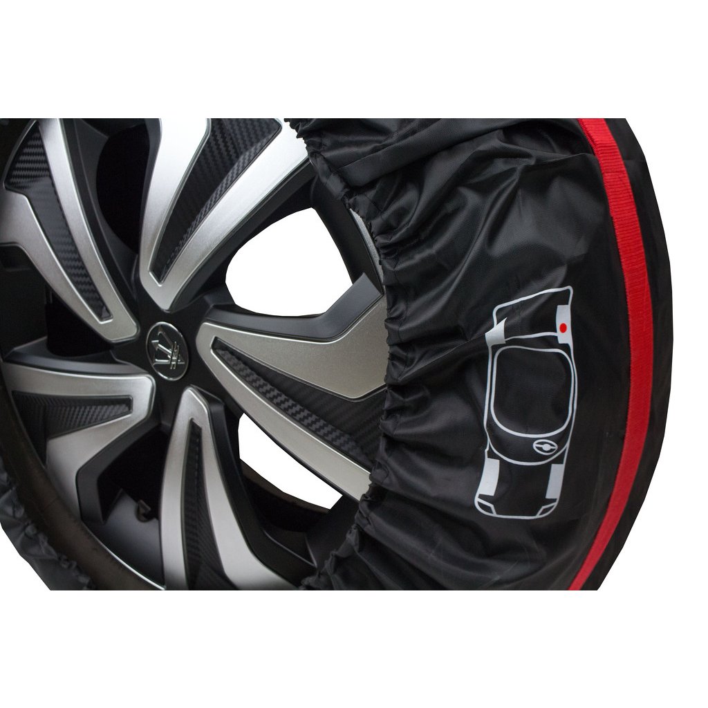 Textil gumiabroncs- és keréktárcsaburkolatok, 13-16 hüvelykes méretekhez. Maximális külső átmérő 60 cm Húzópánttal és a gépkocsin elhelyezett helyzetjelzéssel. Csomagonként 4 darab.