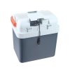 hűtőszekrény Kapacitás 24 l akár 20°C-kal a környezeti hőmérséklet alá hűti az ételeket és italokat (hűtőpárnákkal kell alátámasztani). +55°C-ig melegít Zöld és piros jelzőfények jelzik a hűtést vagy a fűtést kiváló minőségű szigetelés és fedéltömítés Kivehető válaszfal (rács) 12 V-os vagy 220-240 V-os tápegységgel működik csatlakoztatható az autó, hajó vagy lakókocsi bármely 12 V-os szivargyújtó aljzatába 2 m hosszú tápkábel beépített adapter 220-240 V-os csatlakozóaljzathoz való csatlakoztatáshoz csendes, hosszú élettartamú, érintésmentes motor maximális energiafogyasztás 53 W