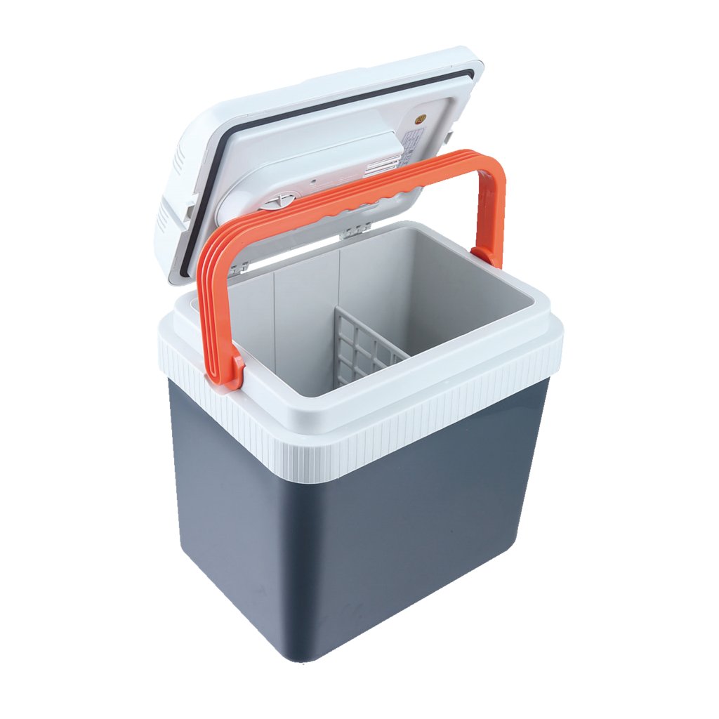 hűtőszekrény Kapacitás 24 l akár 20°C-kal a környezeti hőmérséklet alá hűti az ételeket és italokat (hűtőpárnákkal kell alátámasztani). +55°C-ig melegít Zöld és piros jelzőfények jelzik a hűtést vagy a fűtést kiváló minőségű szigetelés és fedéltömítés Kivehető válaszfal (rács) 12 V-os vagy 220-240 V-os tápegységgel működik csatlakoztatható az autó, hajó vagy lakókocsi bármely 12 V-os szivargyújtó aljzatába 2 m hosszú tápkábel beépített adapter 220-240 V-os csatlakozóaljzathoz való csatlakoztatáshoz csendes, hosszú élettartamú, érintésmentes motor maximális energiafogyasztás 53 W