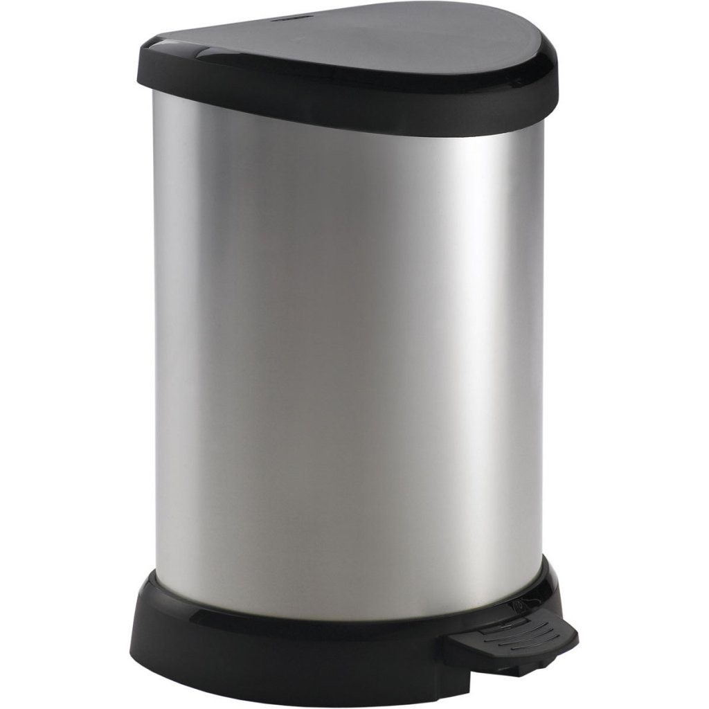 Műanyag hulladékgyűjtő a Curver cégtől. Modern megjelenés - fémfólia. Kényelmes pedálos nyitás (a pedálos mechanizmus rejtett és nem zavarja a kuka megjelenését). A kuka alkalmas a konyhába, fürdőszobába vagy irodába. Nincs ujjlenyomat a felületen és könnyen tisztítható. Nagyfokú méretstabilitás, ütésálló. Tényleges belső térfogata 15L.