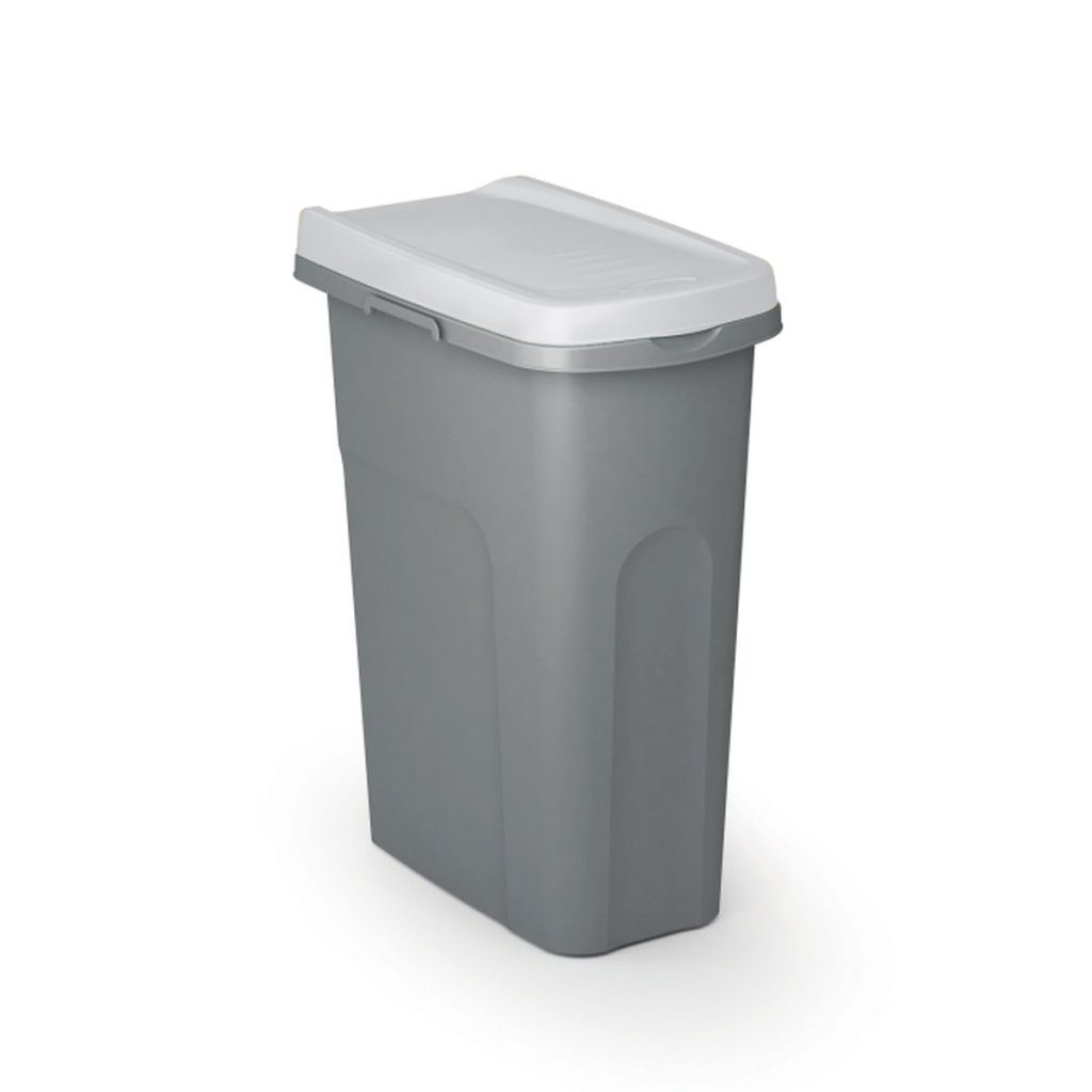 Praktikus műanyag hulladékgyűjtő, amelyet otthoni és irodai mindennapos használatra terveztek. Kompakt méretekkel, szilárd, pattintható fedéllel rendelkezik, és a több kuka kombinálhatóságának köszönhetően általános hulladékgyűjtésre és hulladékválogatásra egyaránt alkalmas. Tartós műanyagból készült, amely könnyen mosható és ellenáll a mechanikai sérüléseknek. Egyszerű és funkcionális kialakításának köszönhetően modern és klasszikus belső terekhez egyaránt illik.