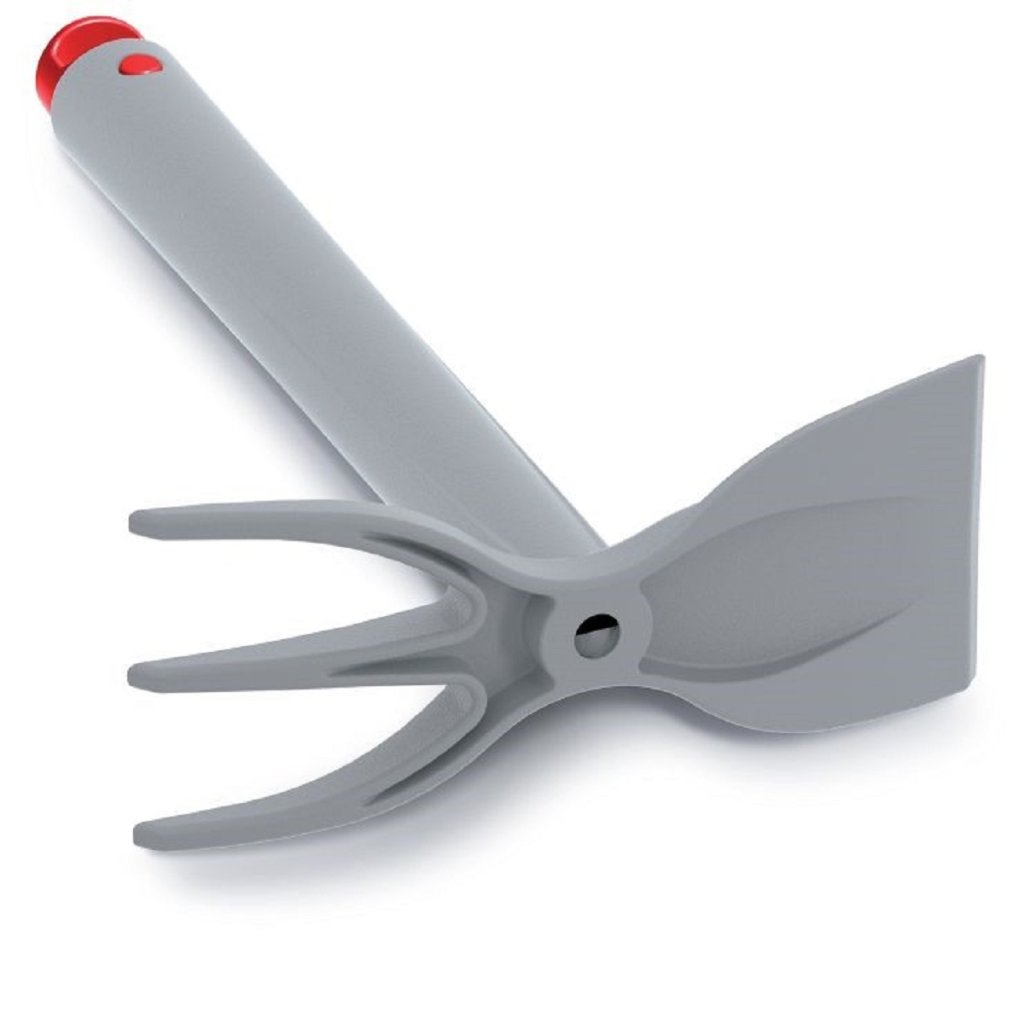 Kicsi, kézzel öntött, kétoldalas kapa, háromfogú kultivátorral kombinálva.