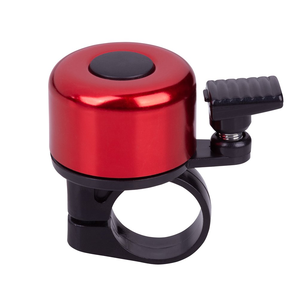 Kerékpárcsengő, fém/műanyag, 33 mm átmérőjű, könnyű összeszerelés, piros színű.