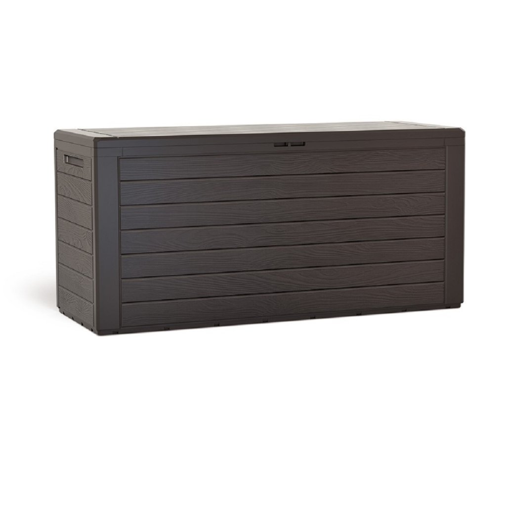 Olasz kerti láda WOODEBOX 280 literes, mérete 116x43x8x55cm, vonzó fa deszkák, műanyag, oldalsó; ideá& lní kertekbe, teraszokra, erkélyekre