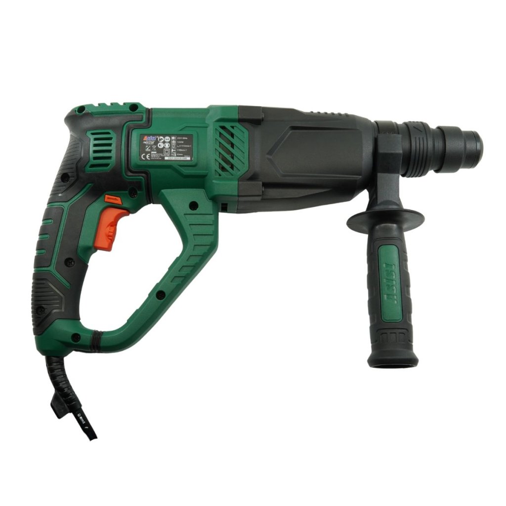 Univerzális teljesítményű pneumatikus fúrókalapács kiváló 1050 W teljesítménnyel, ami az egyik legerősebb fúrókalapács a kategóriájában. Beton, tégla, kő vagy más építőanyagok forgácsolásához. A kalapács kompakt kialakítású, 3,4 kg-os alapsúllyal. Alkalmas acélba, fába, de különösen építőanyagokba való fúráshoz, erejének köszönhetően tartós betonba, téglába és más kemény anyagokba is. A csúszókuplung megakadályozza a gép túlterhelését a szerszám blokkolásakor.