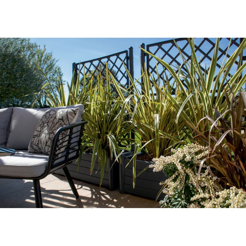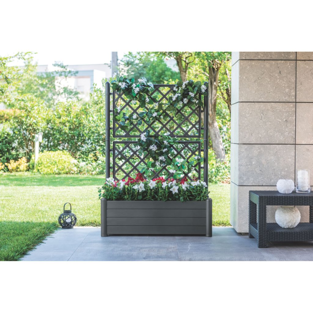 A 100 × 43 × 142 cm méretű, 80 liter térfogatú, téglalap alakú, magasított rácsos ültető ideális különböző típusú növények termesztéséhez. Felülete fadeszkákat imitál, így természetes megjelenést kölcsönöz a különböző terekbe.