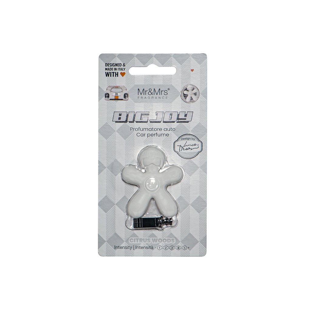 A Big Joy egy Luca Trazzi által tervezett autós légfrissítő, amelyet sportos, popos és színes szellemben tervezett. EVA - hőre lágyuló polimerből (puha gumi) készül, és kellemes illatot bocsát ki, amikor érintkezik az autó szellőzőnyílásán keresztül kifújt levegővel. Nagyon vonzó kialakítás egy baba alakjában Hőre lágyuló polimerből (lágy gumiból) készült. Bergamott, mandarin, menta, gardénia, borostyán, cédrusfa és vanília jegyei. Híres olasz formatervezés Rangos IFRA tanúsítvány Biztonságos az egészségre Akár 50 napig szabadítja fel az illatot Méretek: 4,5 x 5,5 cm A légkondicionáló kipufogójára rögzíthető.