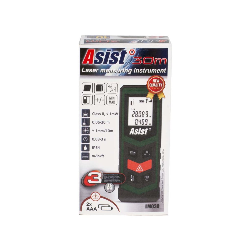 Mérőgépre van szüksége a hosszúság, a térfogat vagy a terület gyors és pontos méréséhez? Az ASIST LM040-1 lézeres mérőgép ennél sokkal többet tud! Ez egy dá mérőeszköz, amely lézertechnológiát használ, akár 1 mW (635 nm) lézerrel, három különböző típusú dá mérésére. Ez a technológia 10 méteren +/- 1 milliméteres mérési pontosságot biztosít, a mérési tartomány 50 millimétertől 30 méterig terjed. Má számos fejlett funkció, amelyek közé tartozik a terület, a térfogat mérése. Két AAA elemmel működik (tartozék). A mérőműszer ellenáll a pornak és a víznek.