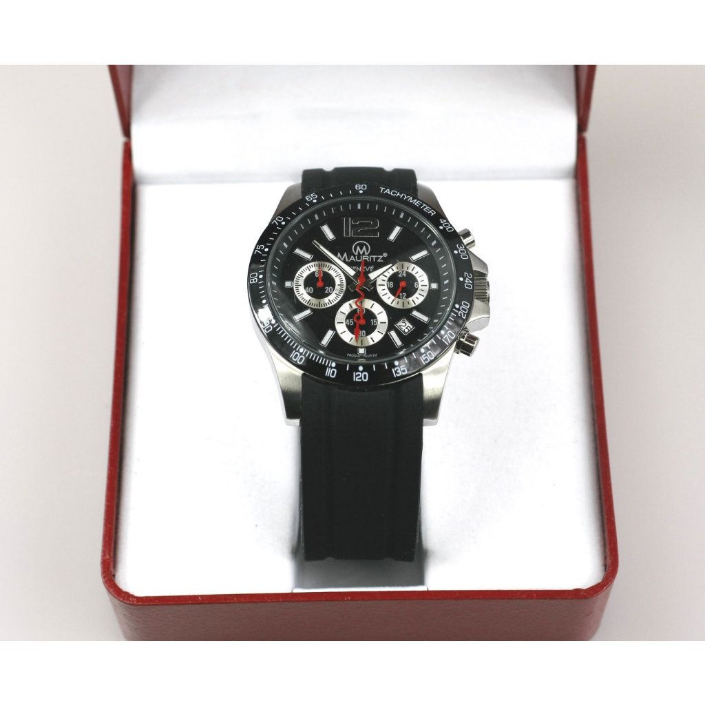 Ez a sportosé Mauritz Geneve márkájúé óra számos funkcióval van felszerelveé többek közötté óra, perc, másodperc, dátum és többek közötté tachyméter. Az órát dárkly csomagolva, a márka fekete logójával ellátott piros dobozban kapja. Ahol az órát biztonságosan tárolják egy bílém papírovém kézben. Biztos, hogy tetszeni fog&scaron& í mindenkinek, aki má rád luxus.