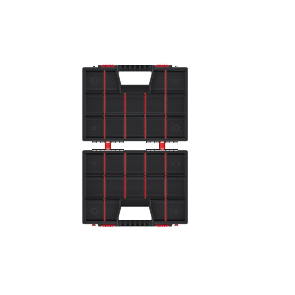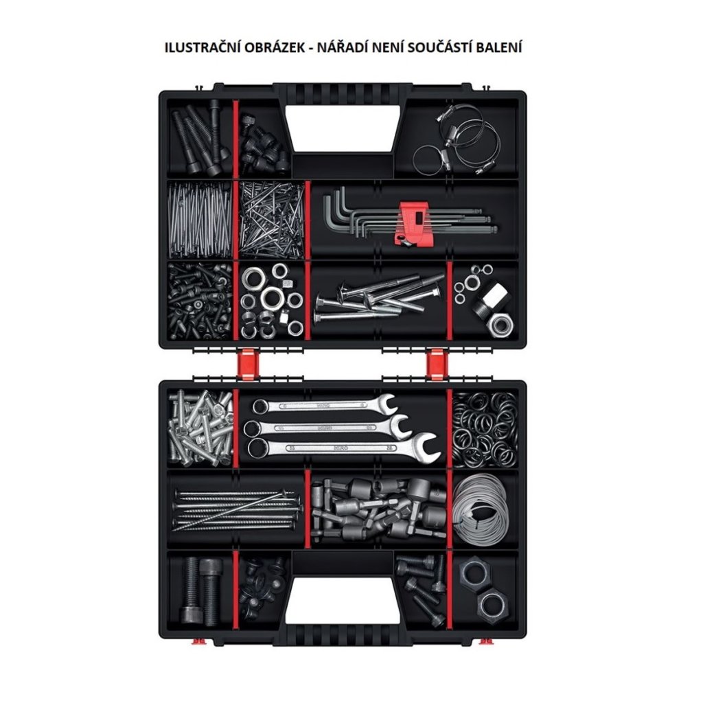Hordozható szervező csavarok, anyák, alátétek és hasonló apróságok számára. A szervezőt úgy tervezték, hogy mindkét oldala hordtáskaként használható. Egymástól elkülönülő rekeszekkel rendelkezik. Piros színű kapcsokkal rendelkezik a könnyű és biztonságos lezárás érdekében. Könnyen hordozható a fogantyú segítségével, amely csukott állapotban kialakul.