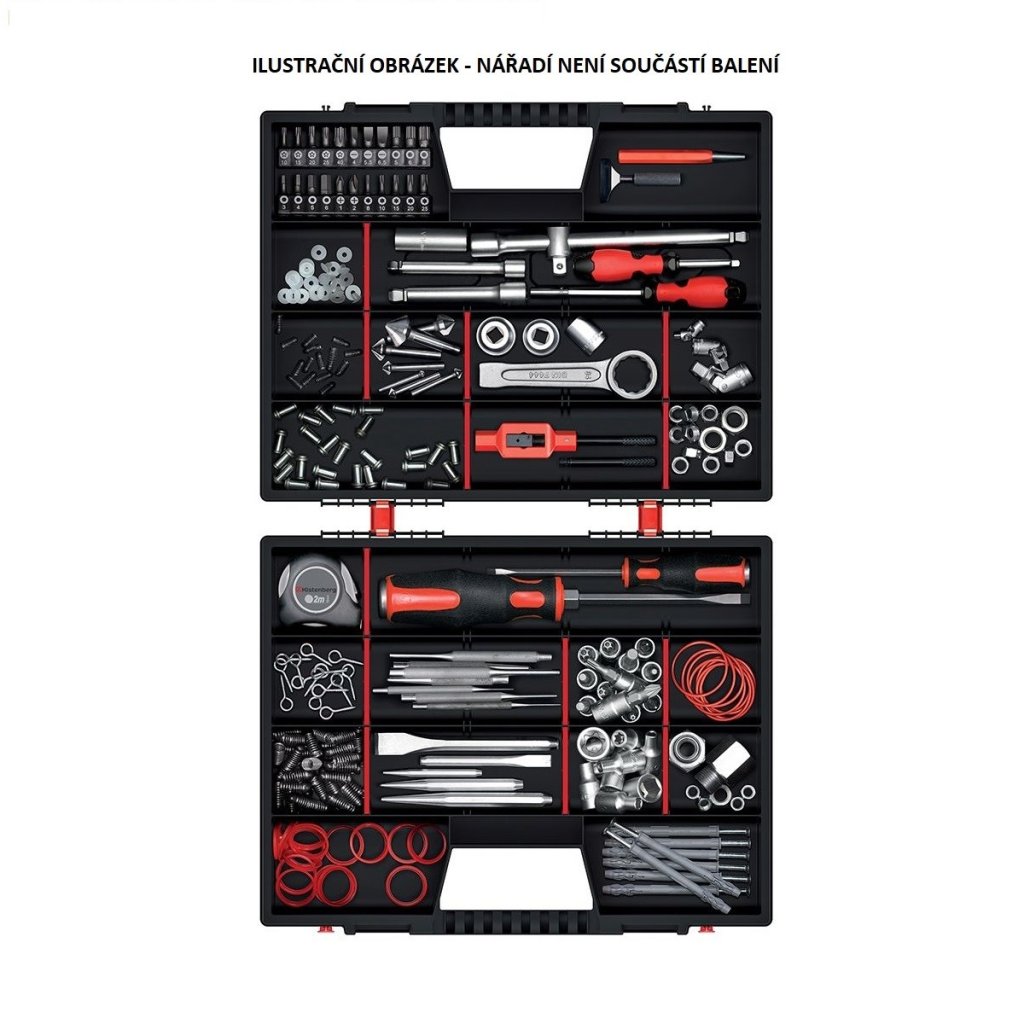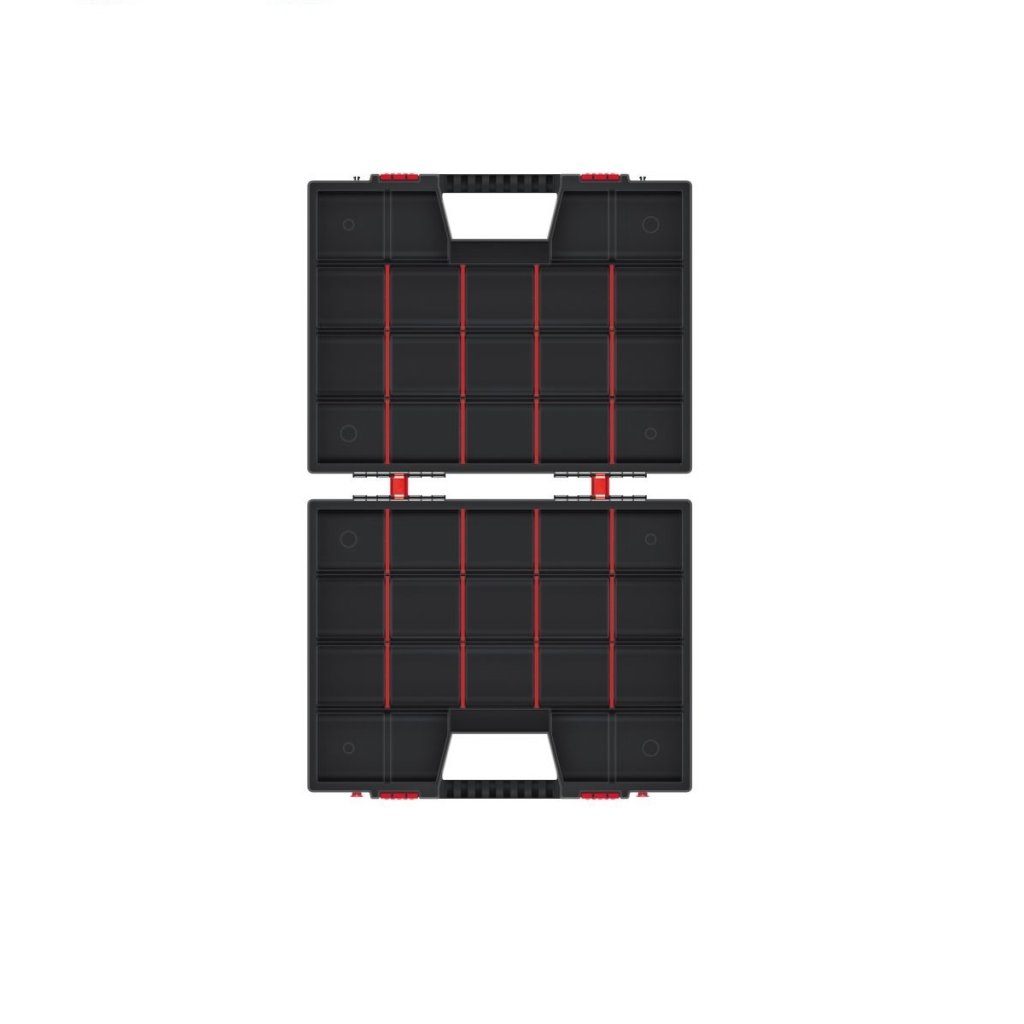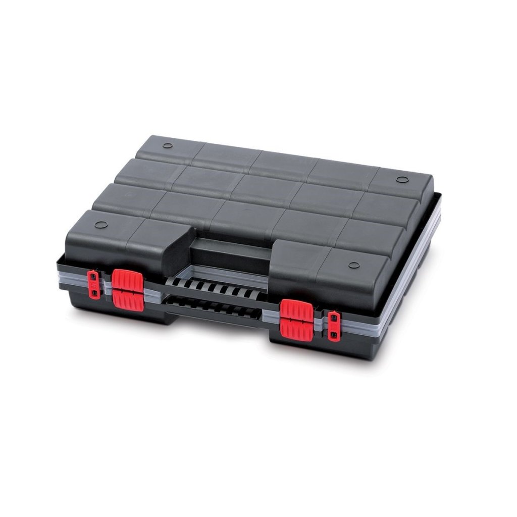 Hordozható szervező csavarok, anyák, alátétek és hasonló apróságok számára. A szervezőt úgy tervezték, hogy mindkét oldala hordtáskaként használható. Egymástól elkülönülő rekeszekkel rendelkezik. Piros színű kapcsokkal rendelkezik a könnyű és biztonságos lezárás érdekében. Könnyen hordozható a fogantyú segítségével, amely csukott állapotban kialakul.