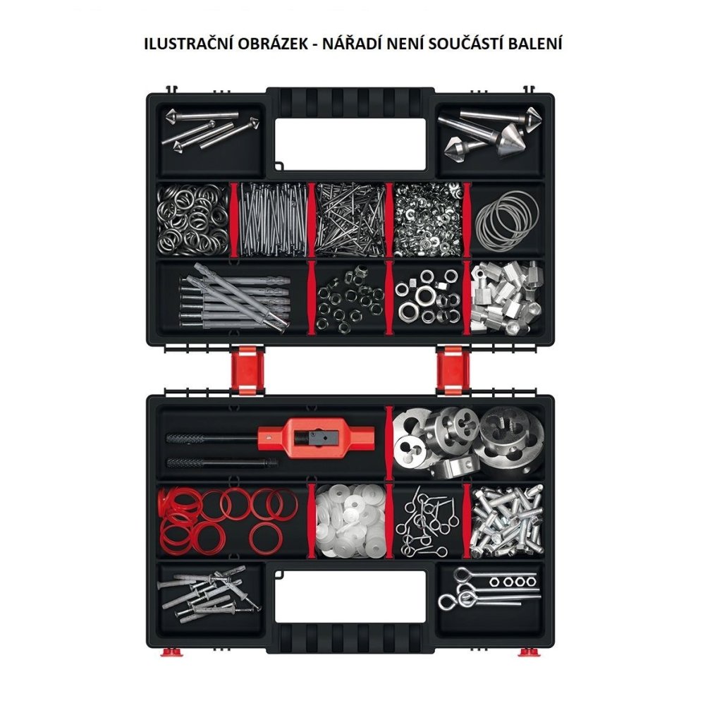 Hordozható szervező csavarok, anyák, alátétek és hasonló apróságok számára. A szervezőt úgy tervezték, hogy mindkét oldala hordtáskaként használható. Egymástól elkülönülő rekeszekkel rendelkezik. Piros színű kapcsokkal rendelkezik a könnyű és biztonságos lezárás érdekében. Könnyen hordozható a fogantyú segítségével, amely csukott állapotban kialakul.