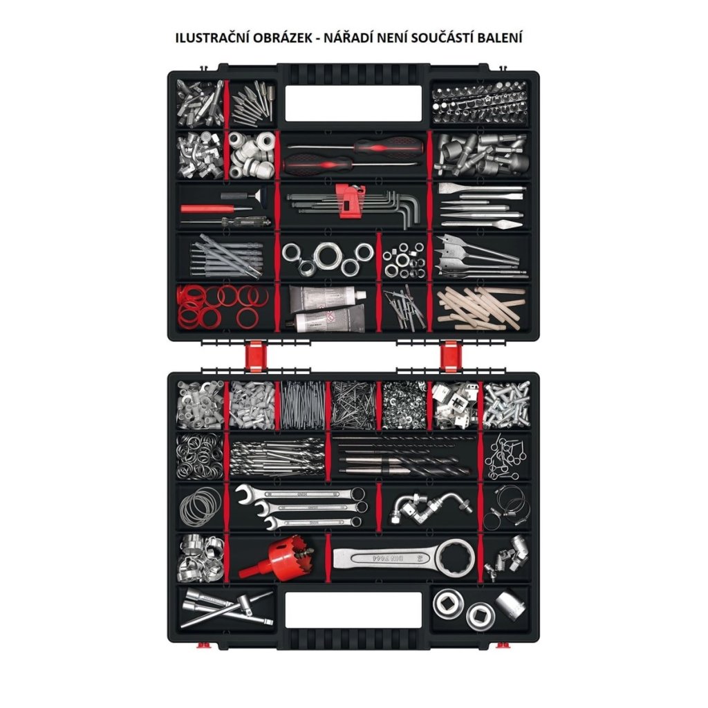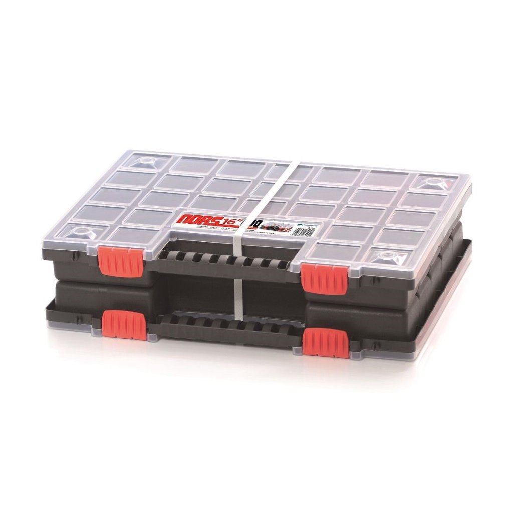 Hordozható szervező csavarok, anyák, alátétek és hasonló apróságok számára. A szervezőt úgy tervezték, hogy mindkét oldala hordtáskaként használható. Egymástól elkülönülő rekeszekkel rendelkezik. Piros színű kapcsokkal rendelkezik a könnyű és biztonságos lezárás érdekében. Könnyen hordozható a fogantyú segítségével, amely csukott állapotban kialakul.