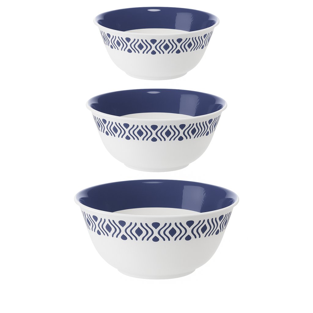 Műanyag tál Tosca, fehér/kék szett 3db fedő nélkül