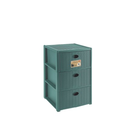 Praktikus tárolószekrény három fiókkal, ideális a kisebb tárgyak rendszerezésére otthon, a fürdőszobában vagy az irodában. Vékony és kompakt kialakításának köszönhetően szűkebb helyeken is elfér. Tartós műanyagból készült, texturált felülettel, az Elegance kollekció elegáns stílusában. A fiókok simán kicsúsztathatók, és bőséges tárolóhelyet kínálnak piperecikkek, irodai kellékek vagy más apró tárgyak számára. A szekrény könnyű, stabil és könnyen karbantartható.