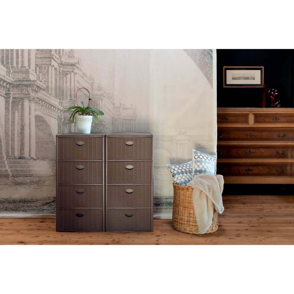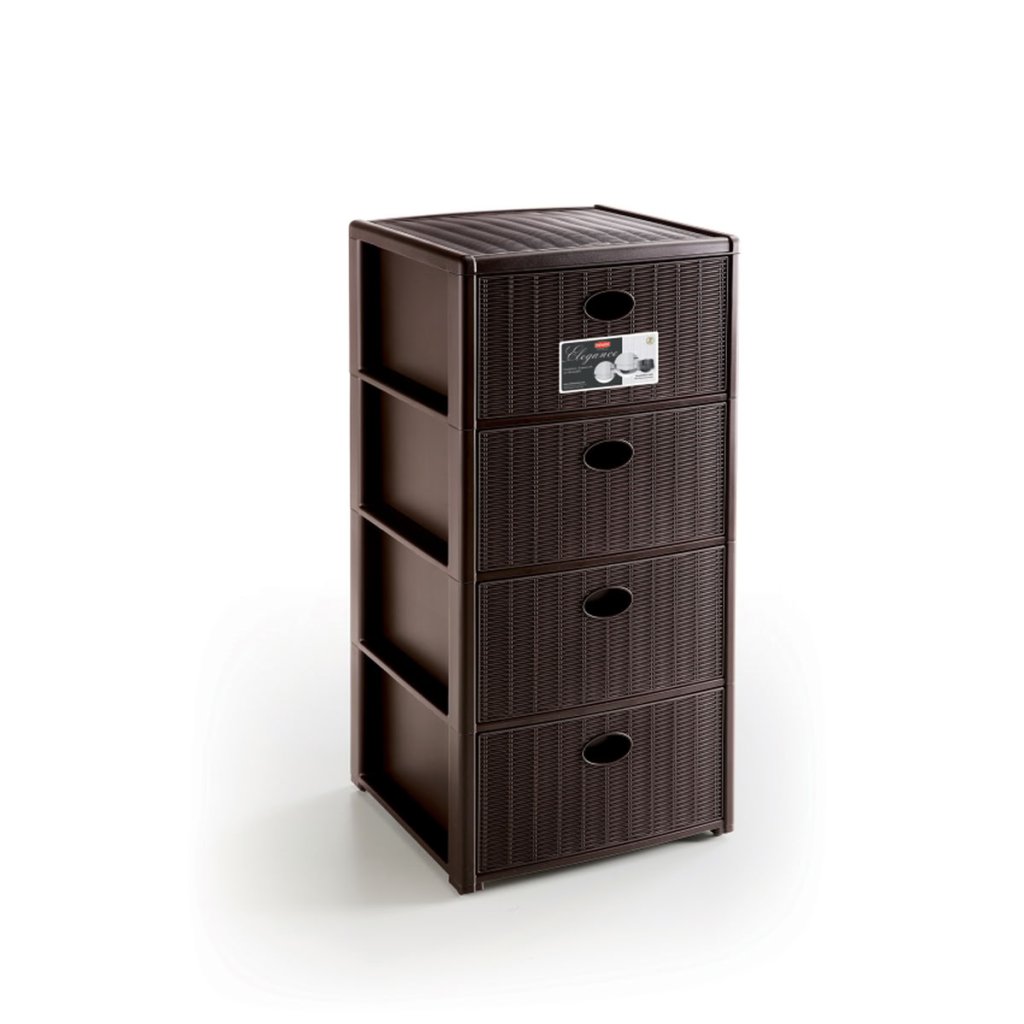 Műanyag tároló polc Elegance, 4 fiókos, barna