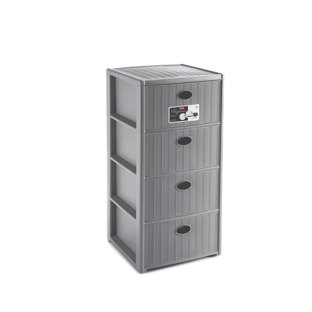 Műanyag tároló polc Elegance, 4 fiókos, szürke