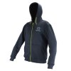 Munkahelyi pulóver pamutból és poliészterből, elasztikus derék és ujjvég, kapucni húzózsinórral, kenguru zseb, folyamatos cipzár, zöld/fekete.