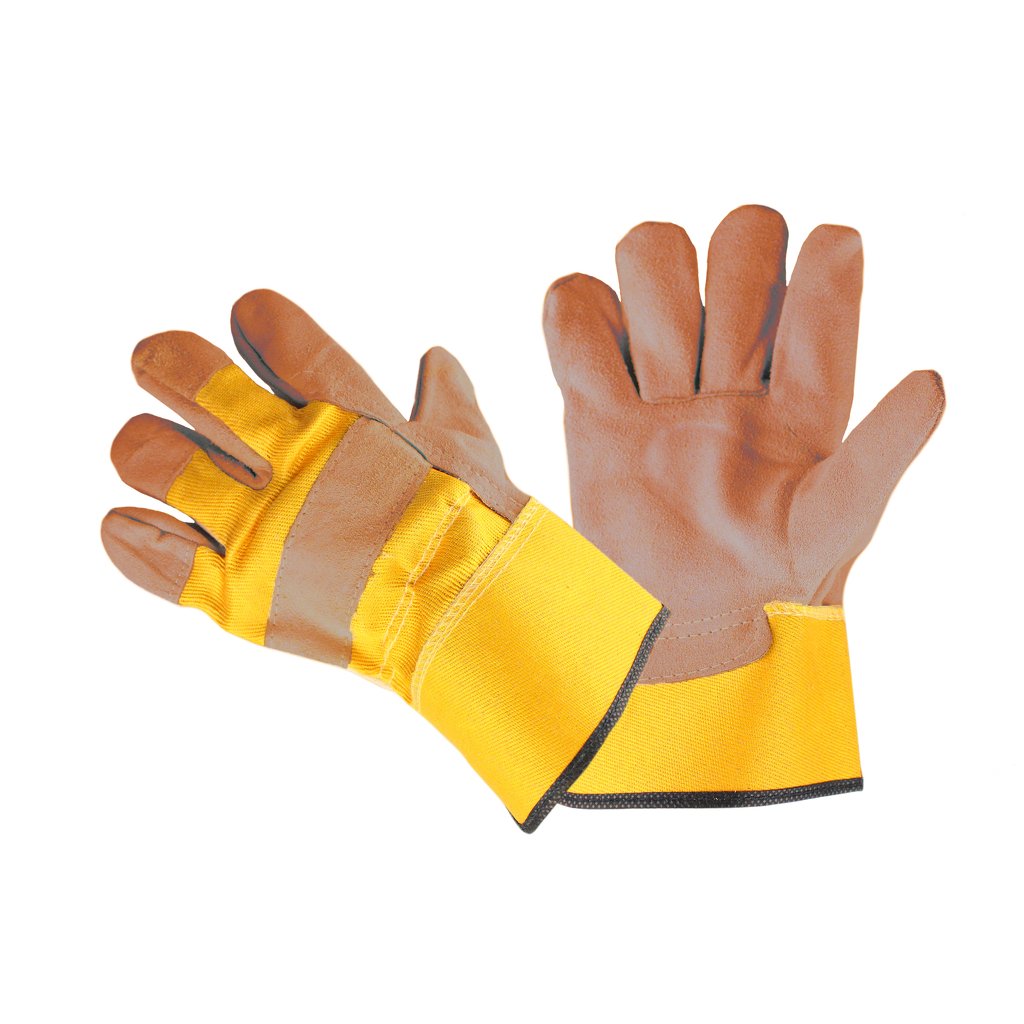 Tartós, bőrből és poliészterből készült munkakesztyű alacsony kockázatú kerti, festési, ipari stb. munkákhoz.