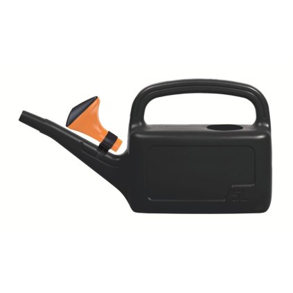 AQUA kerti öntözőkanna levehető tölcsérrel, amely a fúvóka szemére rögzíthető, méretei 58 x 12,3 x 26,5 cm (L x Sz x H), térfogata 5 l, tartós műanyagból készült.