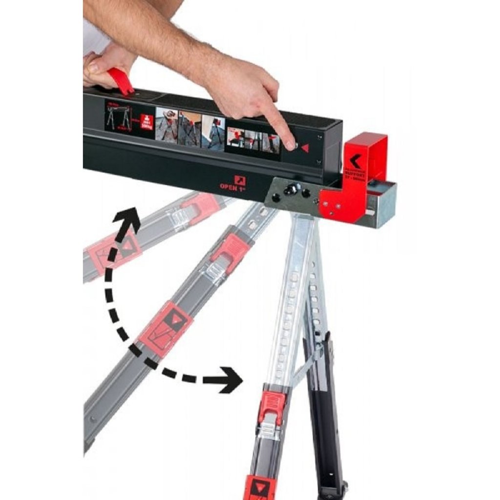 - terhelő felület csúszásgátló bevonattal, a lábak egyik oldalán csuklós támaszok OSB, laminált lemez stb. számára, támaszonként 30 kg teherbírással