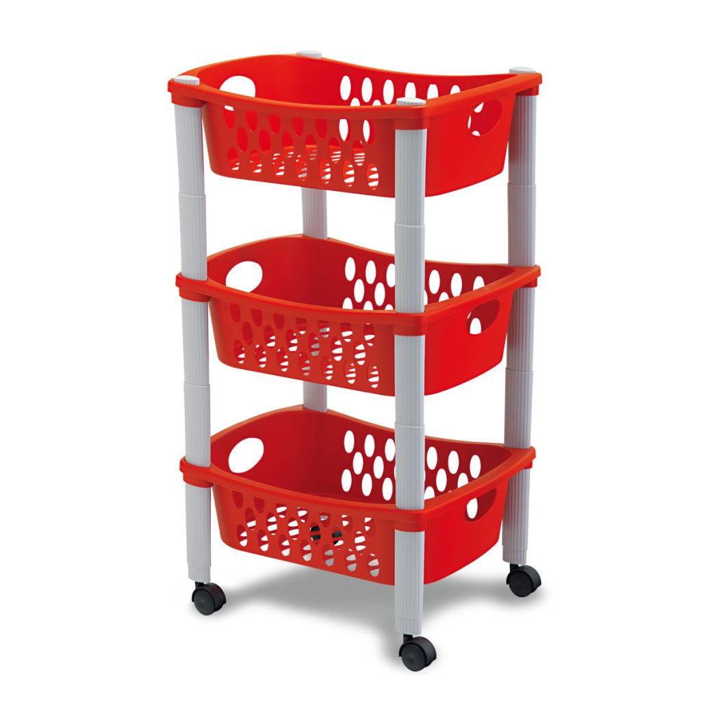 Műanyag konyhakocsi Otello, 3 szintes, kerekekkel, 30×40×70 cm-es méretekkel, könnyű és praktikus, könnyen mosható.