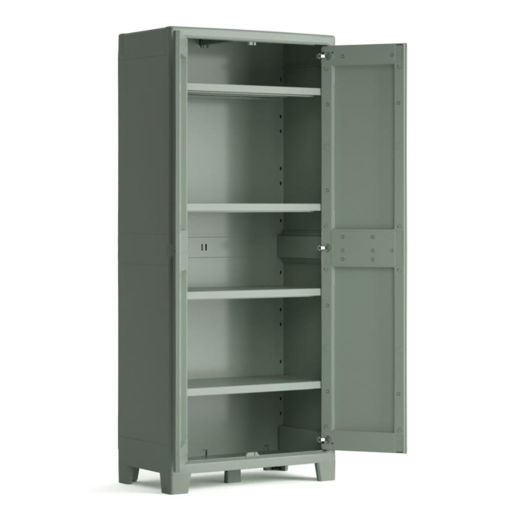 A szekrény 4 állítható polccal rendelkezik, polconként akár 30 kg teherbírással, így rugalmasan, igényei szerint alakíthatja ki a helyet. Négy stabil sarokláb biztosítja, hogy a szekrény még teljes terhelés esetén is rendkívül stabil maradjon.