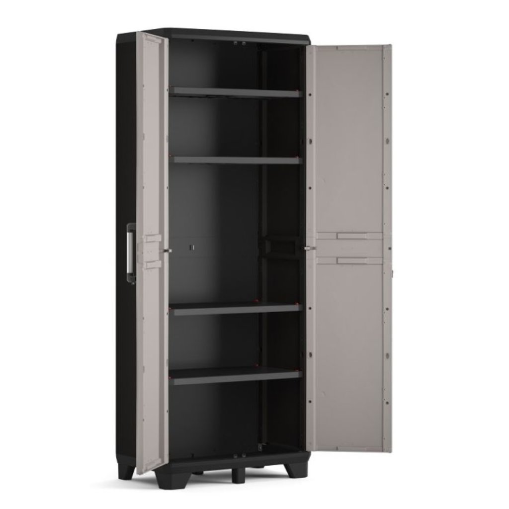 Modern és minimalista kialakításának köszönhetően ez a tárolószekrény könnyedén illeszkedik a legkülönbözőbb terekbe, legyen szó akár az iroda, a garázs, a műhely vagy a terasz praktikus megoldásáról. Ideális választás azok számára, akik a stílus, a kényelem és a tartósság kombinációját keresik.