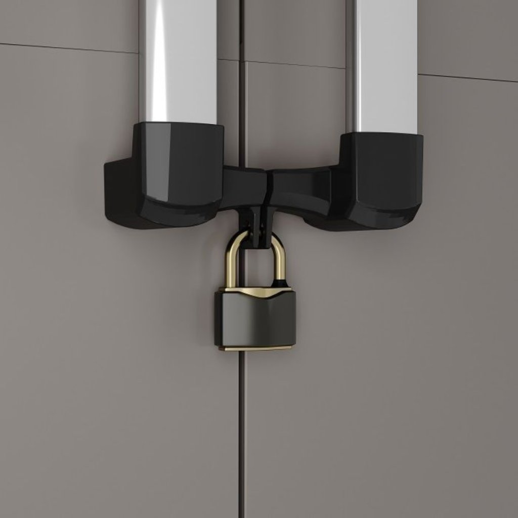 A tárolt tárgyak biztonságát a zárható ajtó garantálja (a zár nem tartozék). A szekrény emellett elegáns alumínium fogantyúkkal van ellátva, amelyek kiemelik a modern minimalista megjelenést, ugyanakkor megkönnyítik a kezelést.
